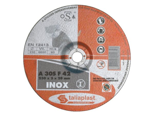 Renforcé. Épaisseur 2,1 mm pour le diam. 230 mm. Pour tronçonnage à sec, avec meuleuse portative. Alésage 22 mm.